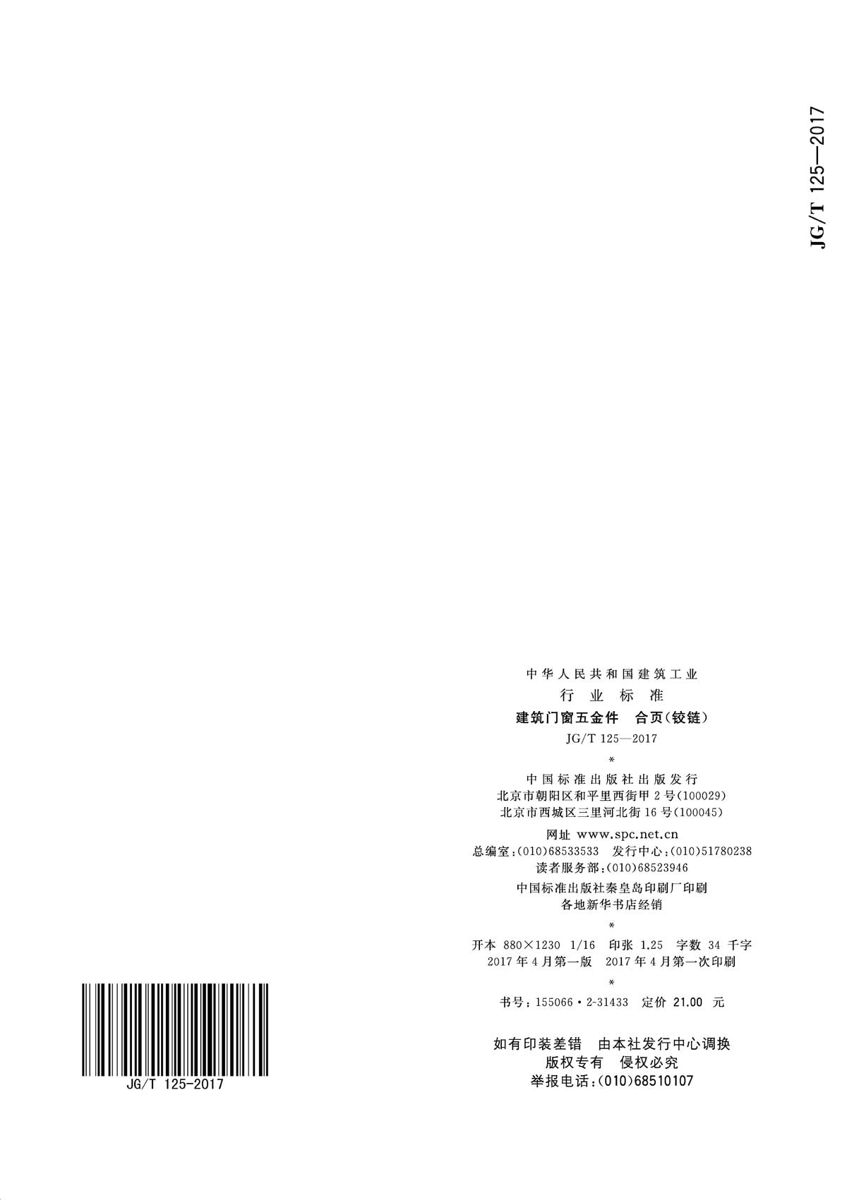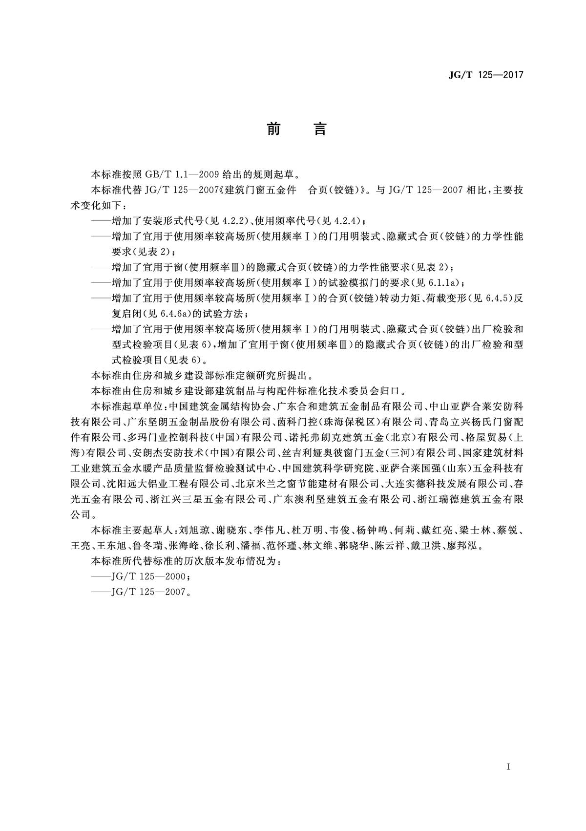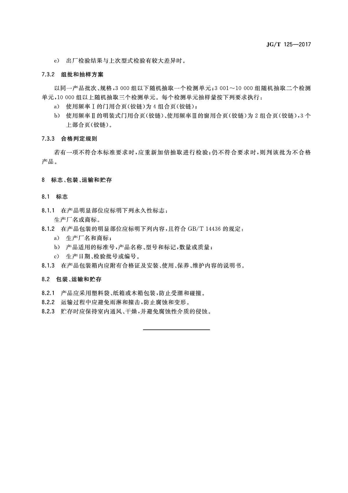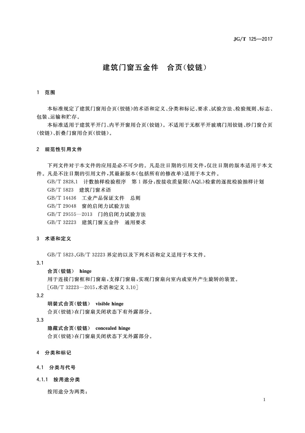 合頁(yè)(鉸鏈)行業(yè)標(biāo)準(zhǔn) JG/T125-2017